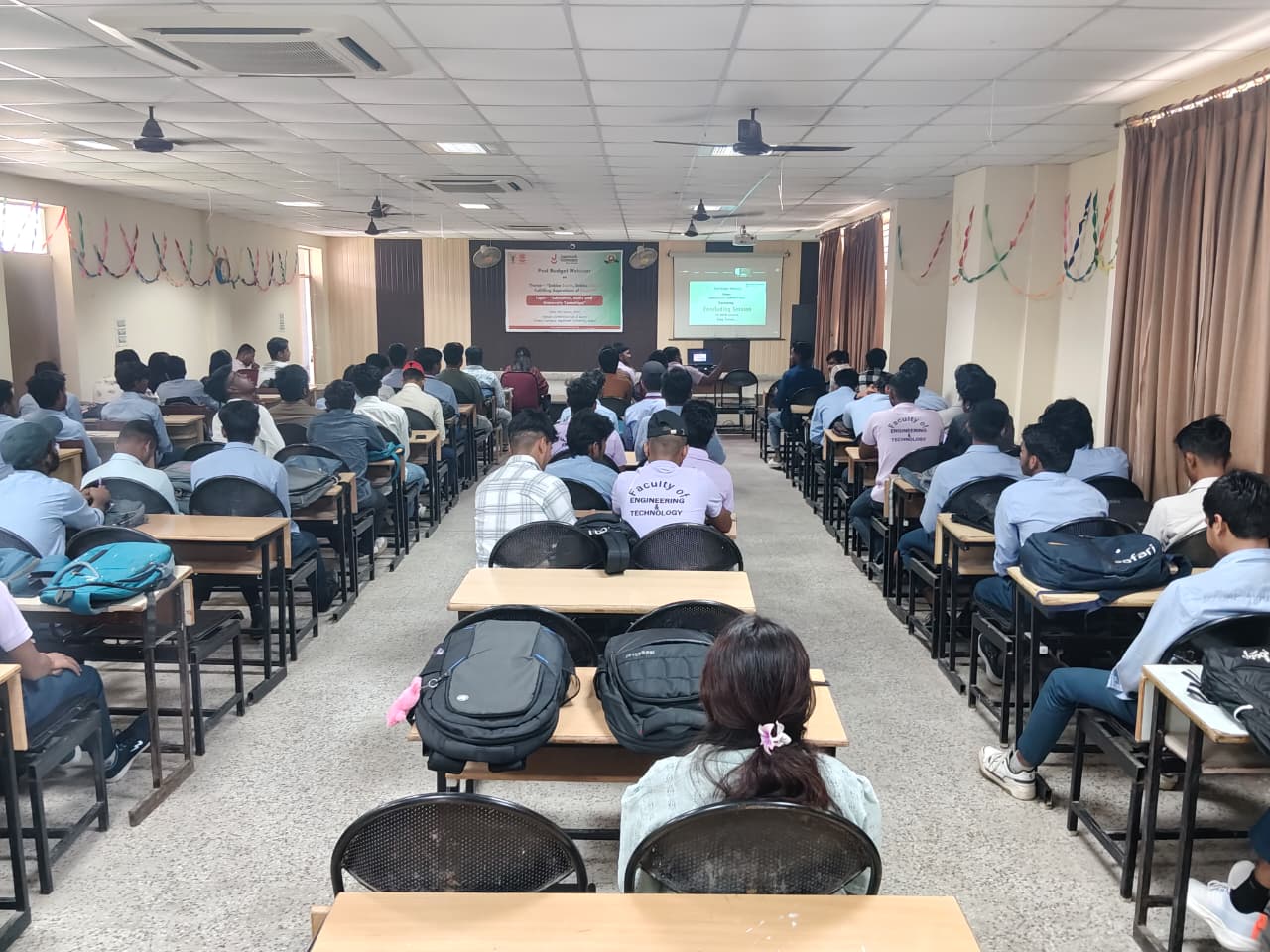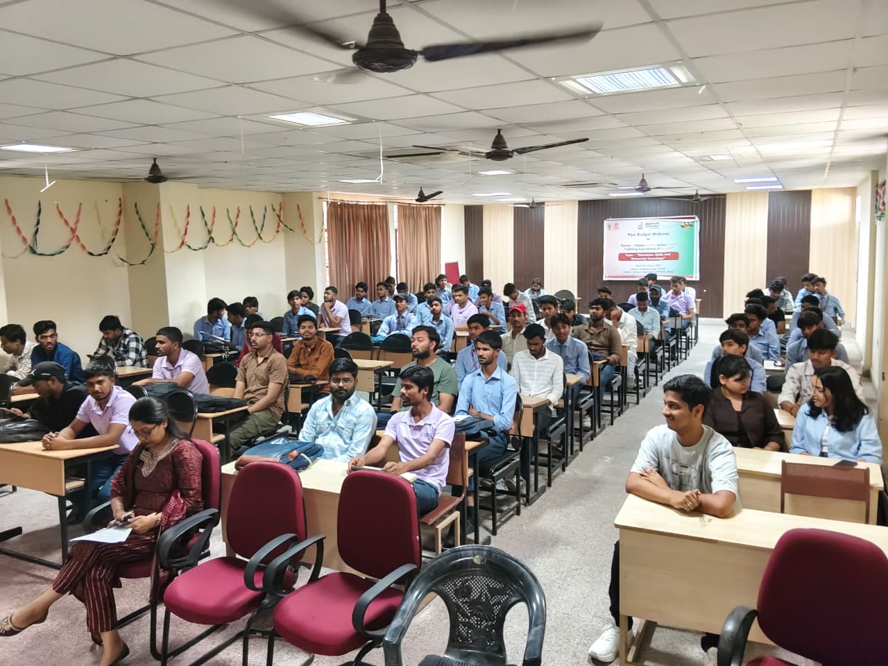 Students and faculty members of Jagannath University Jaipur actively participated in the Post Budget Webinar 2026–27 organized by MoE’s Innovation Cell, AICTE on the theme “Sabka Saath, Sabka Vikas – Fulfilling Aspirations of People.”
