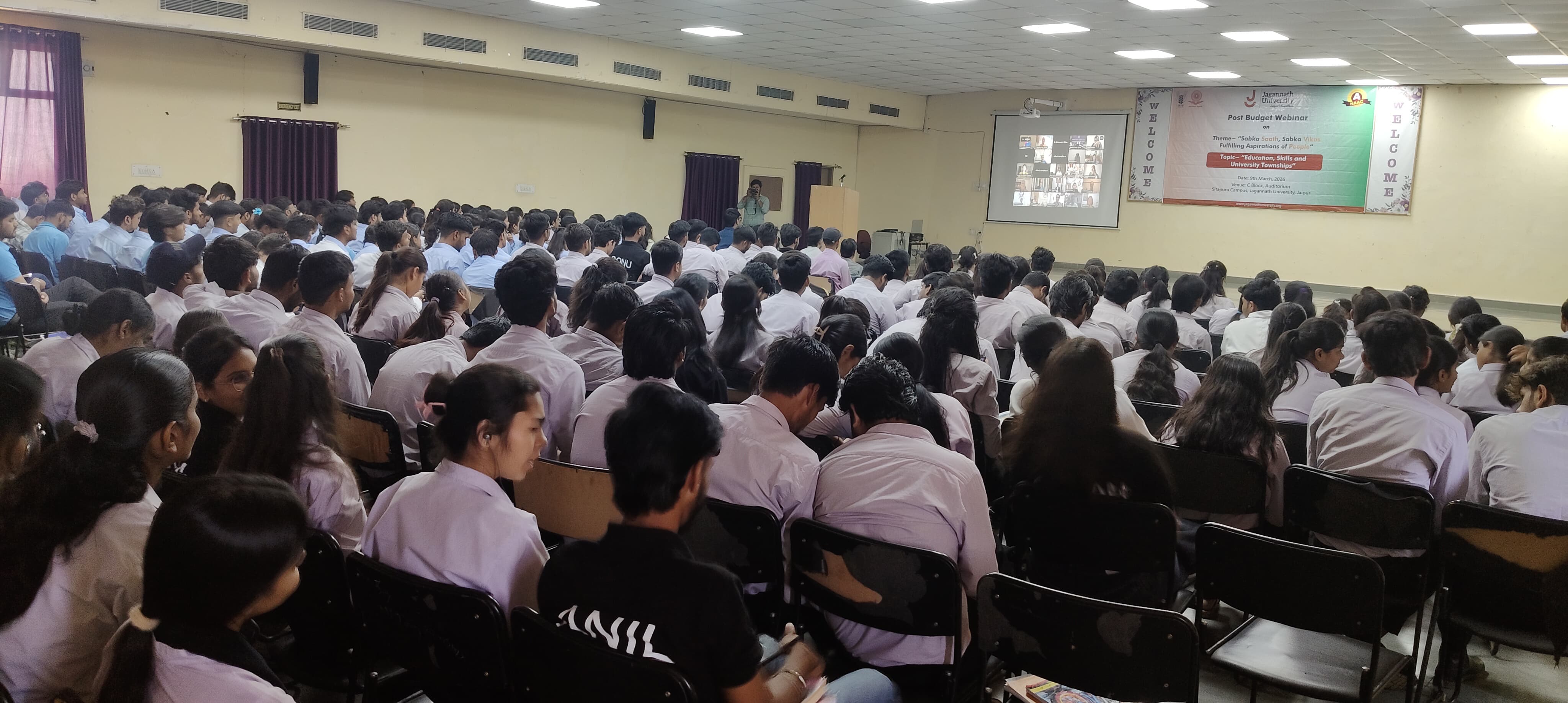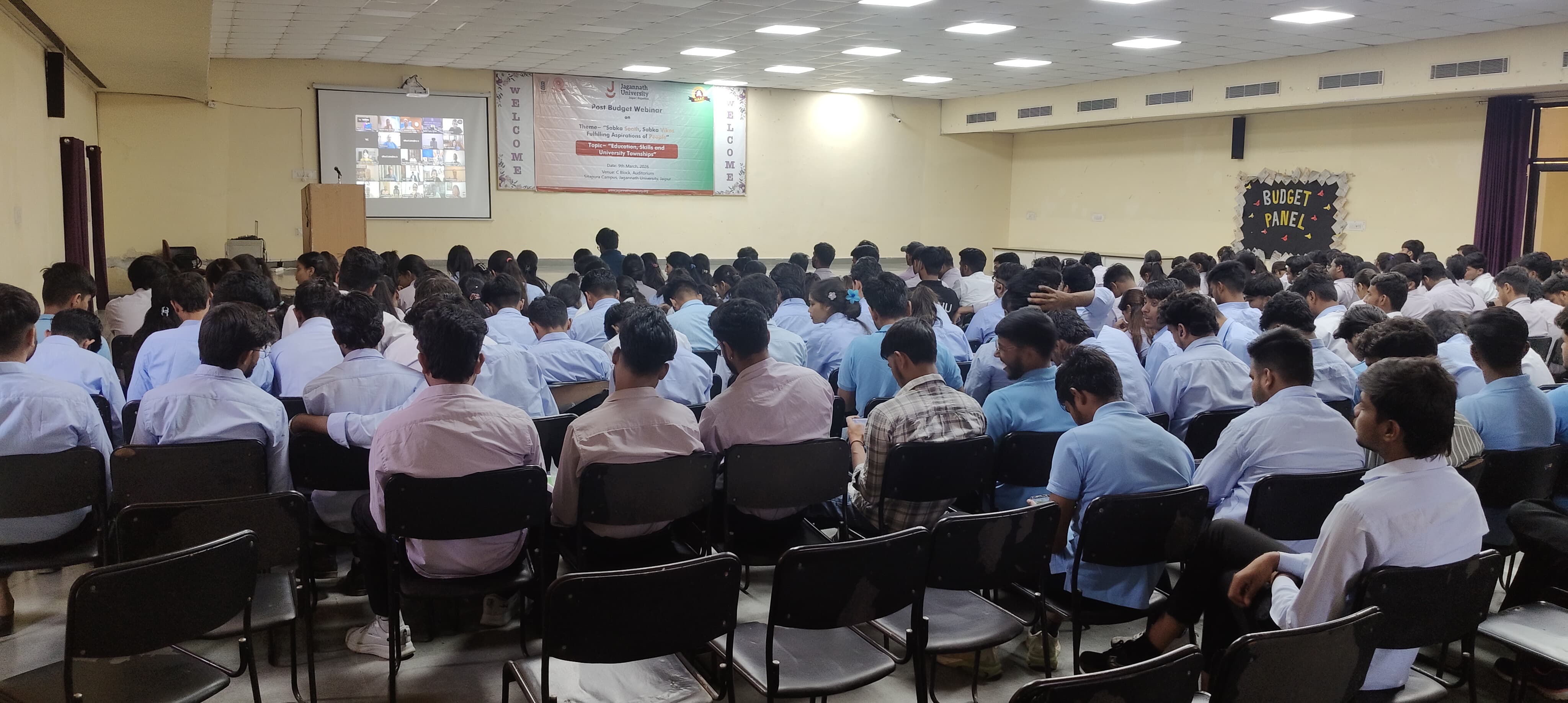 500+ students of Jagannath University Jaipur participated in Post Budget Webinar 2026 on Education, Skills and University Townships.