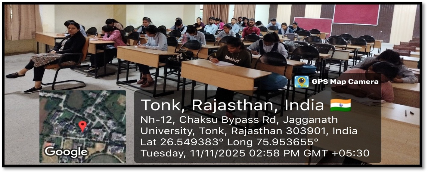 The Department of Education, Jagannath University, Jaipur celebrated National Education Day on 11th November 2025 to commemorate the birth anniversary of Maulana Abul Kalam Azad. An Essay Writing Competition on the theme “Role of Education in Nation Building” was organized to highlight the importance of education in national development.