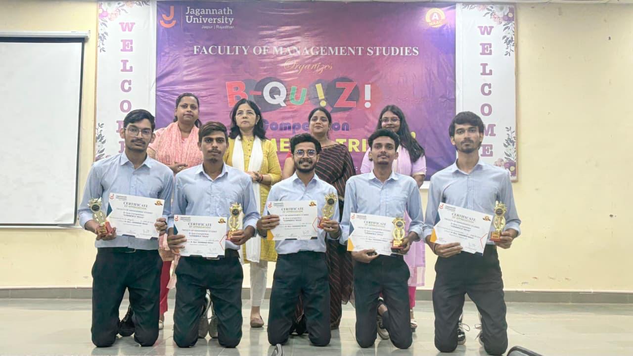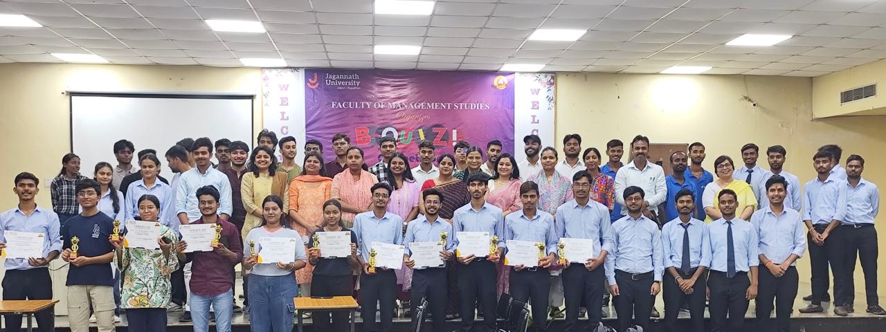 The Faculty of Management Studies, Jagannath University, Jaipur, successfully organized “Commerce Trivia” on 11th September 2025. The quiz aimed to enhance students’ knowledge of commerce, management, and general awareness while promoting teamwork, quick thinking, and confidence.