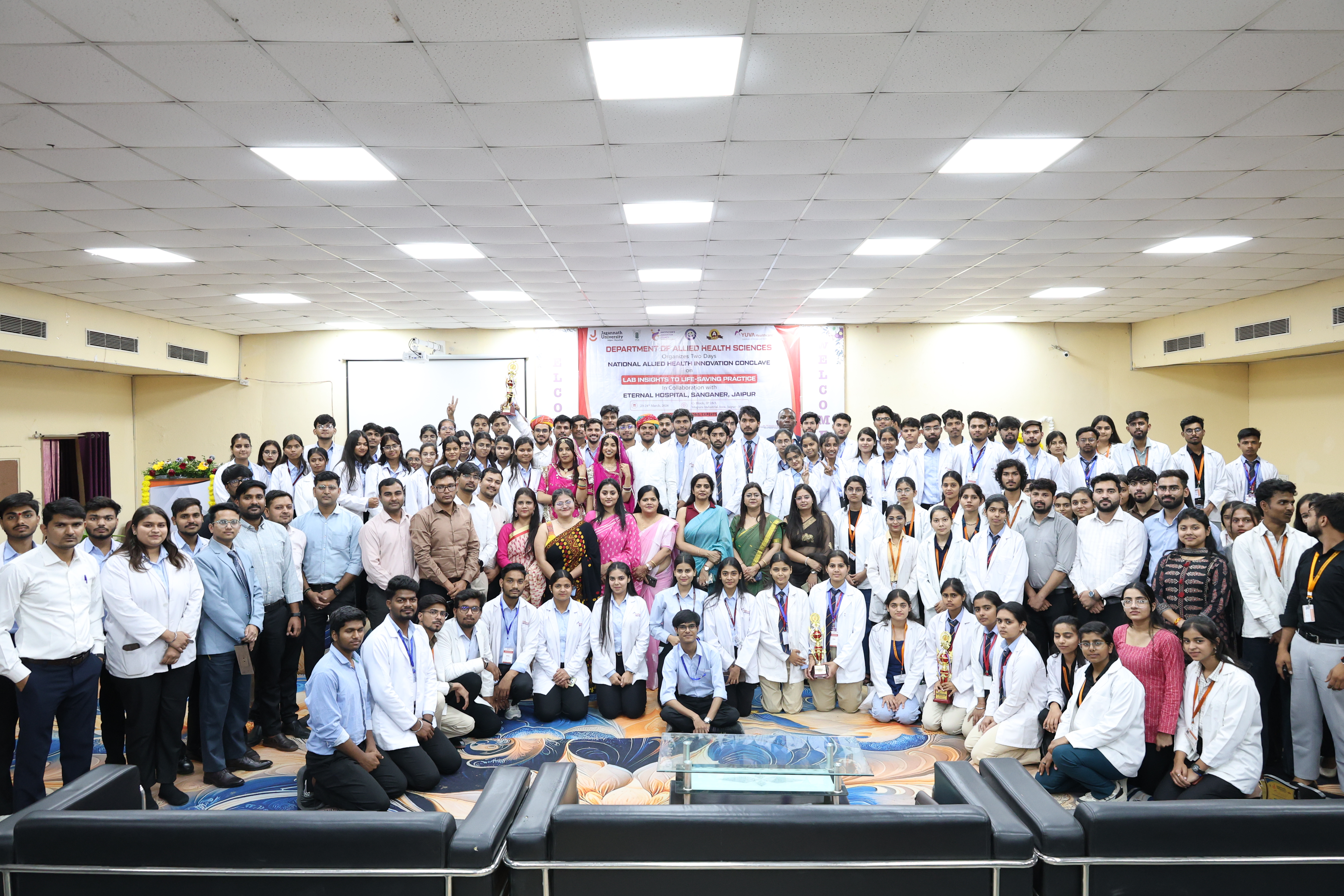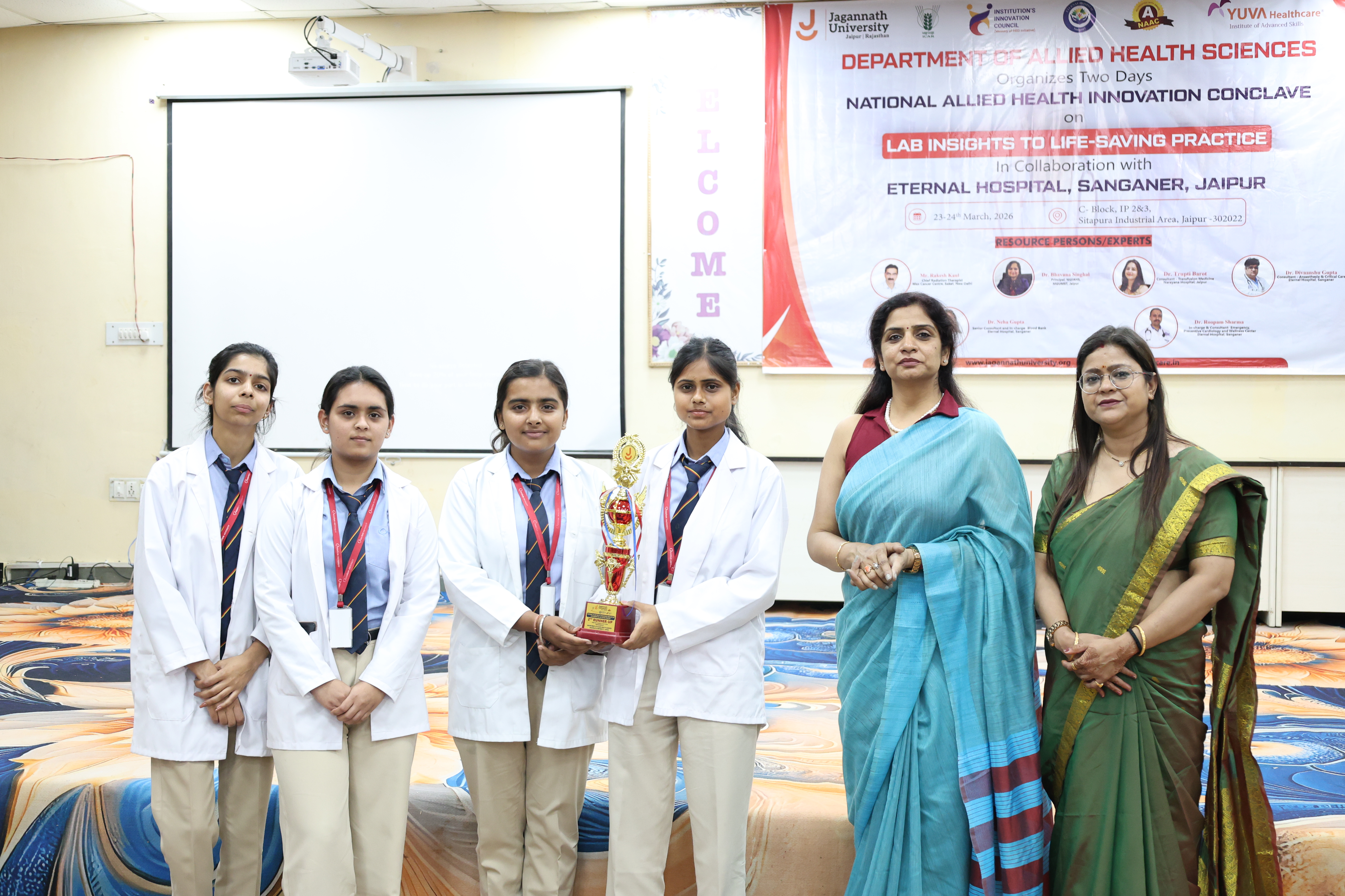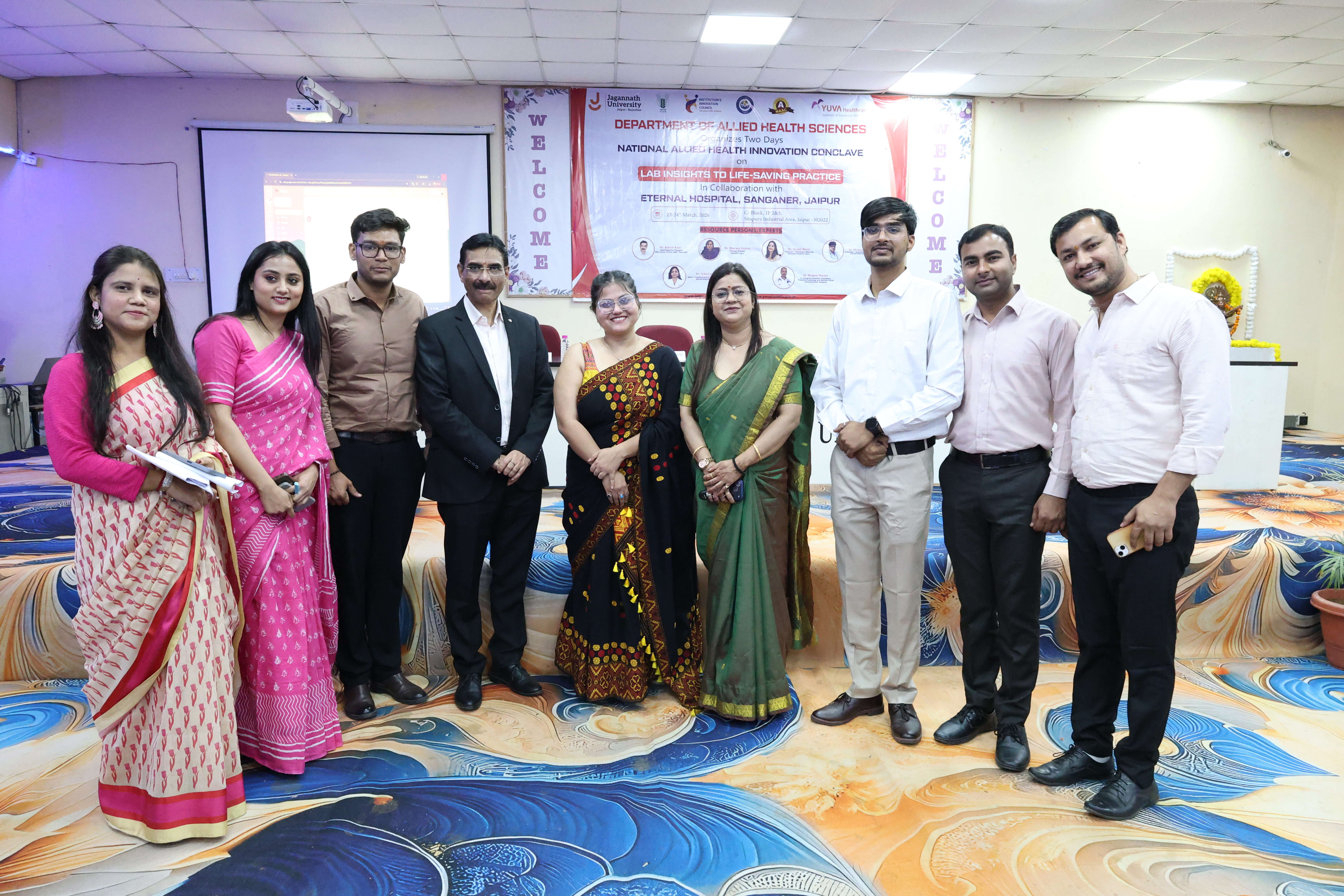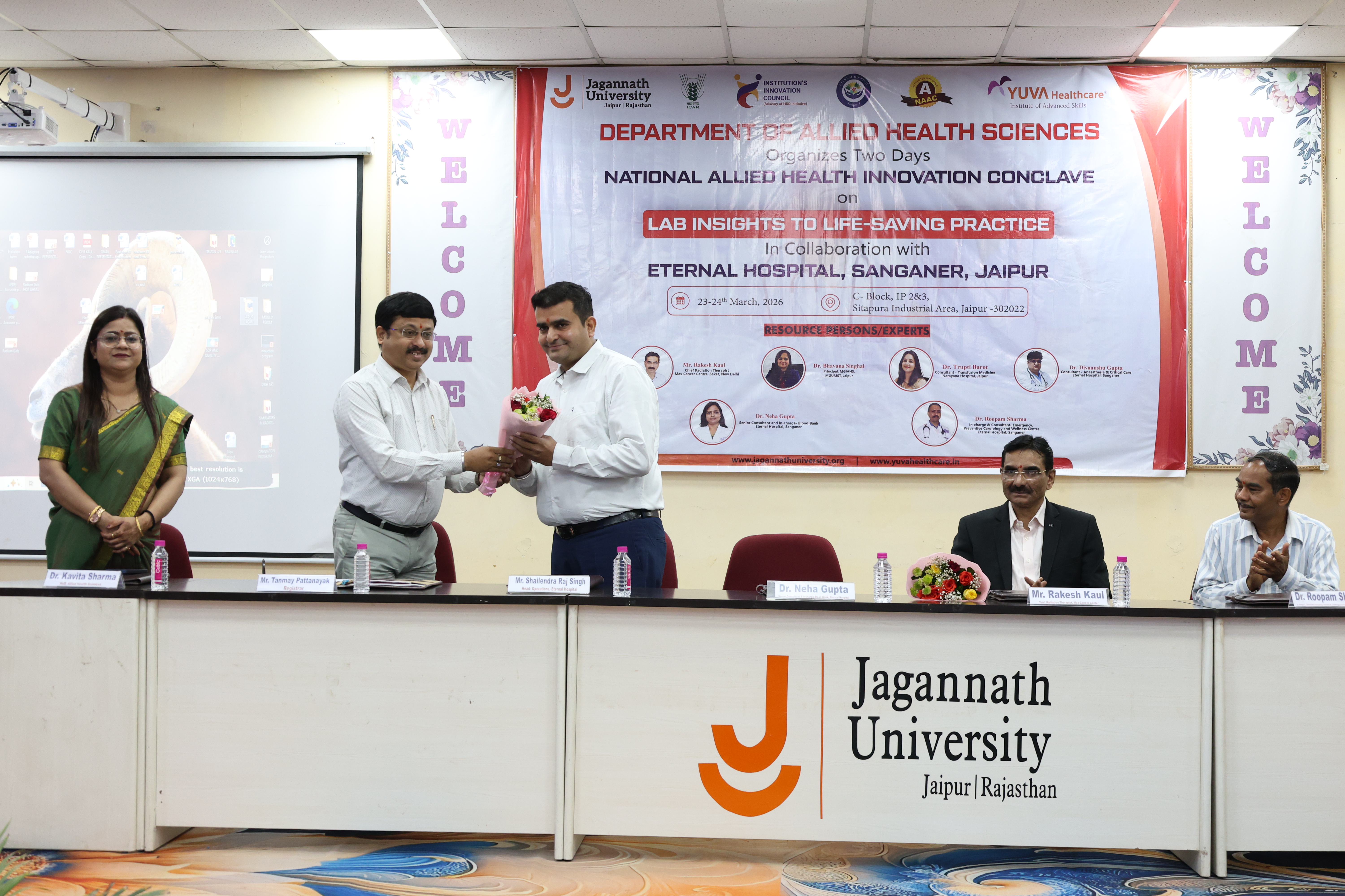 The Department of Allied Health Sciences, Jagannath University, Jaipur, successfully organized a two-day National Allied Health Innovation Conclave 2026 on 23rd and 24th March 2026 at the university campus in collaboration with Eternal Hospital sanaganer. The conclave was designed as a dynamic platform to bridge the gap between theoretical knowledge and practical healthcare applications through simulation-based learning and interdisciplinary collaboration.
