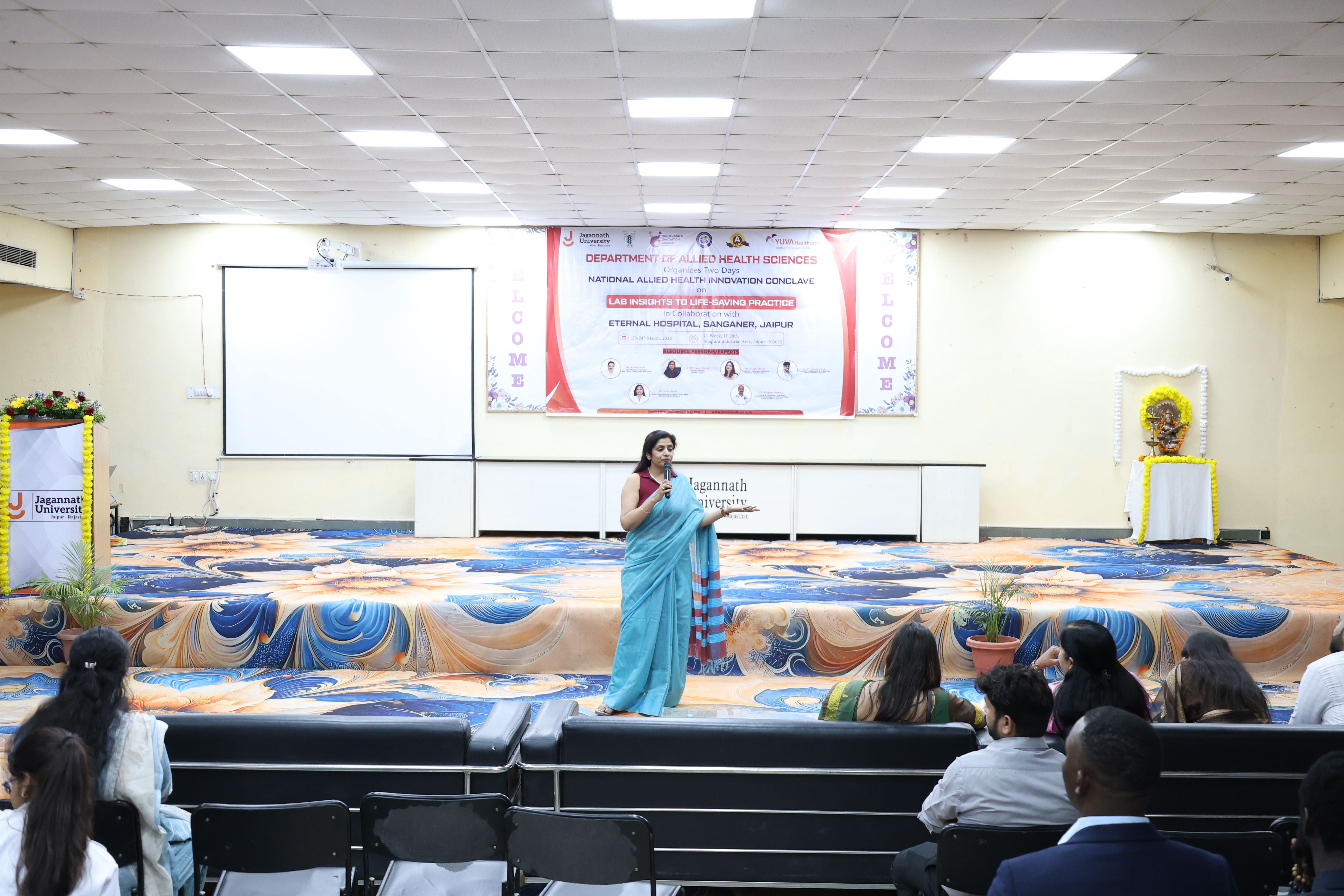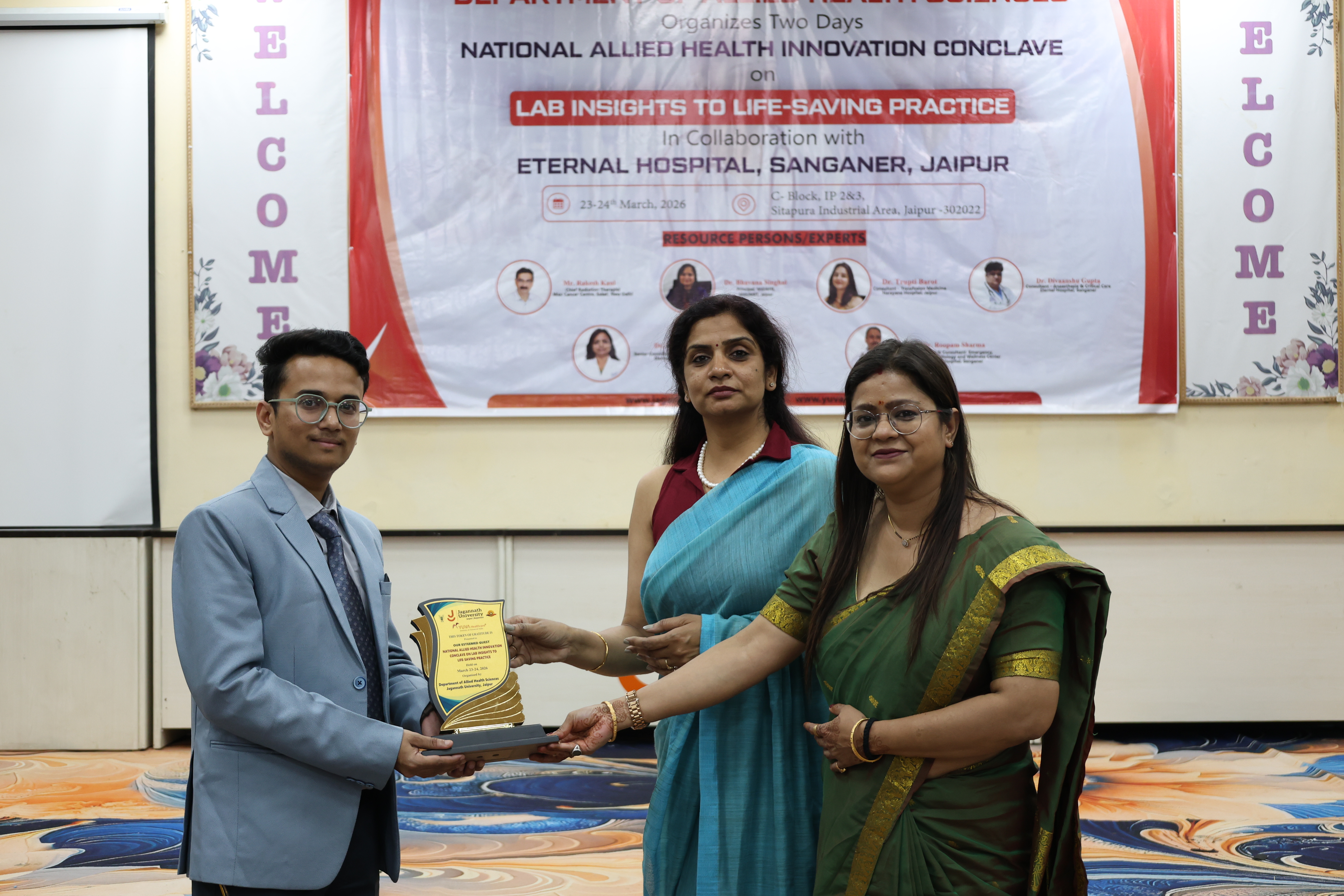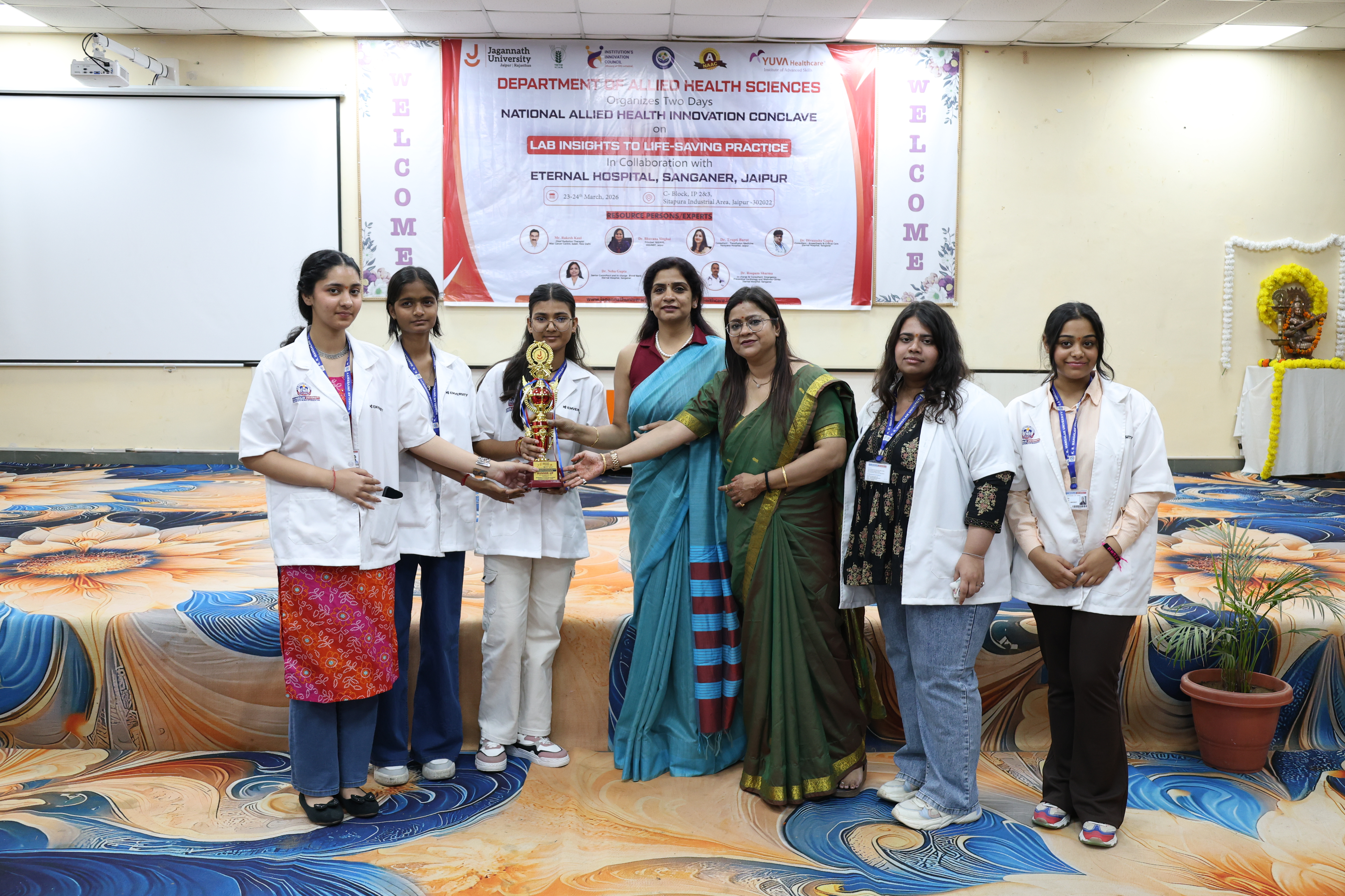 The Department of Allied Health Sciences, Jagannath University, Jaipur, successfully organized a two-day National Allied Health Innovation Conclave 2026 on 23rd and 24th March 2026 at the university campus in collaboration with Eternal Hospital sanaganer. The conclave was designed as a dynamic platform to bridge the gap between theoretical knowledge and practical healthcare applications through simulation-based learning and interdisciplinary collaboration.