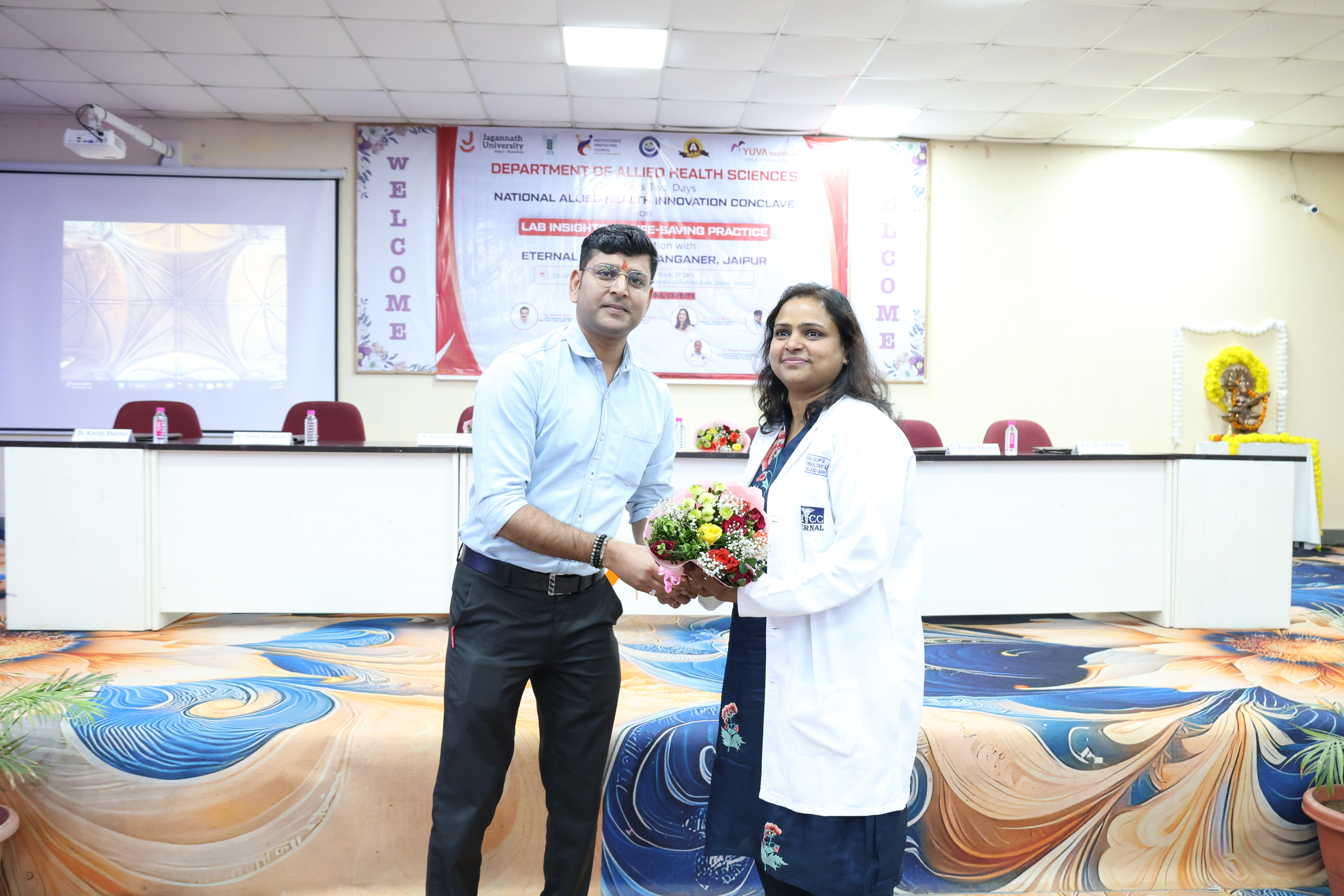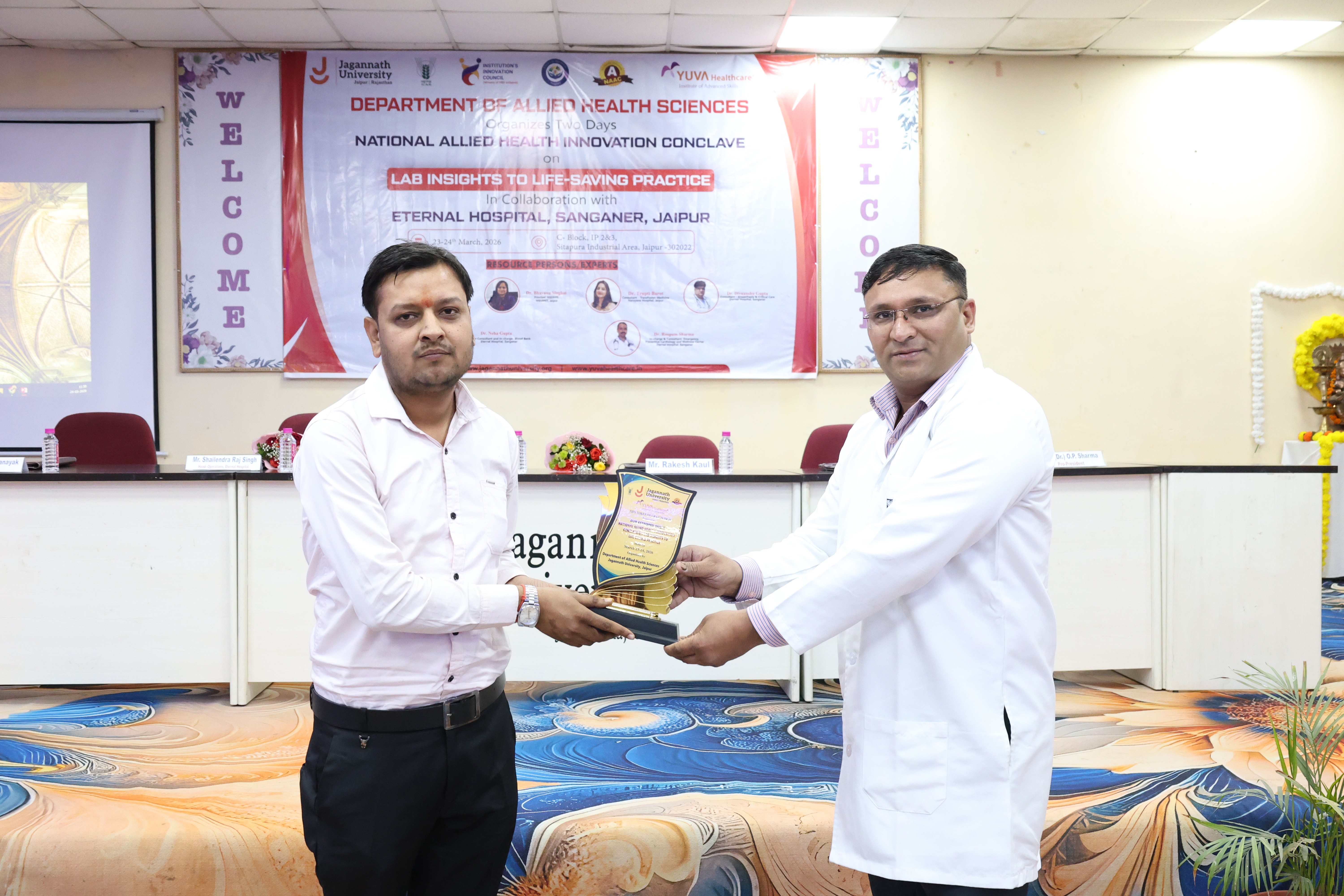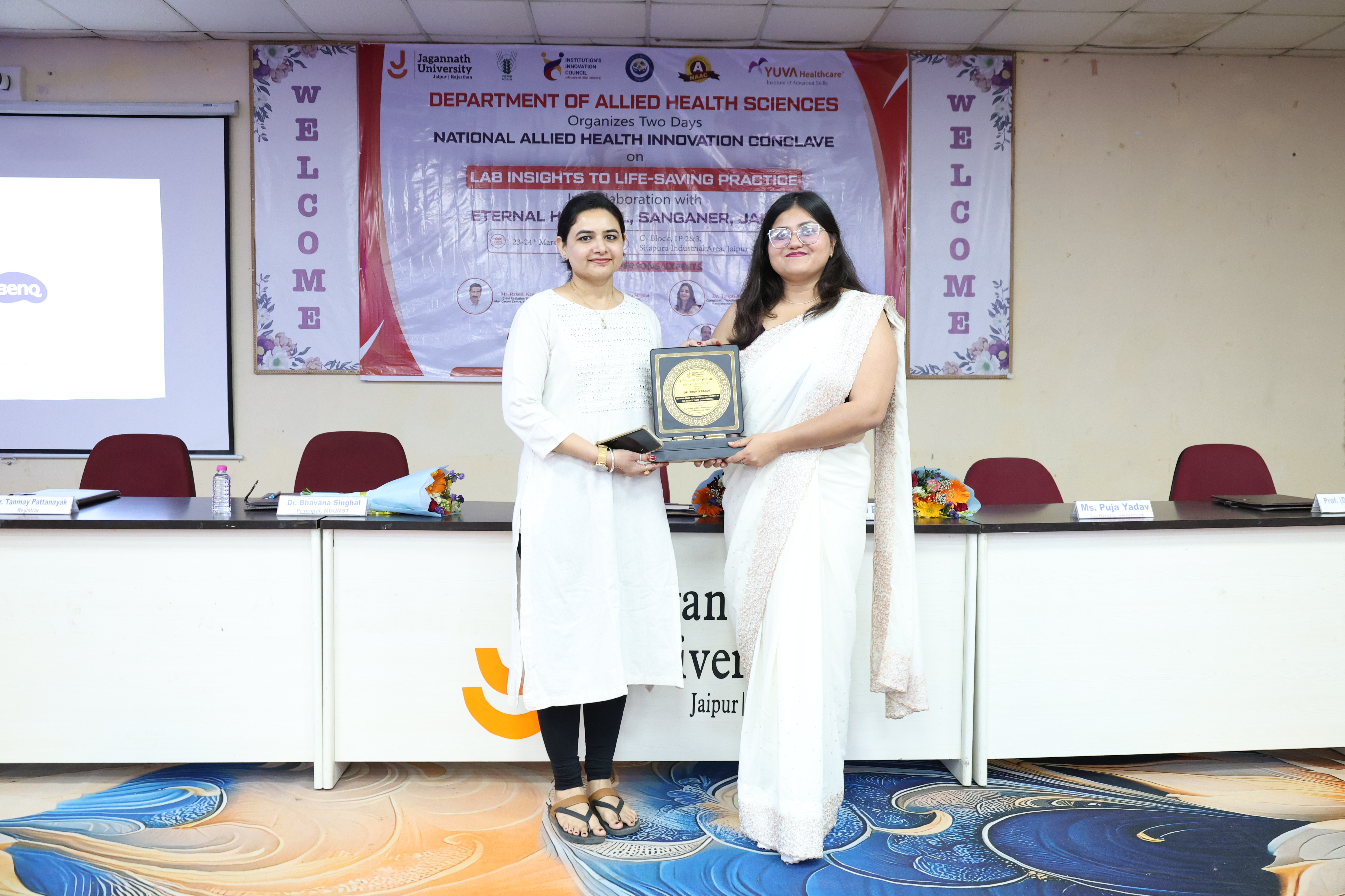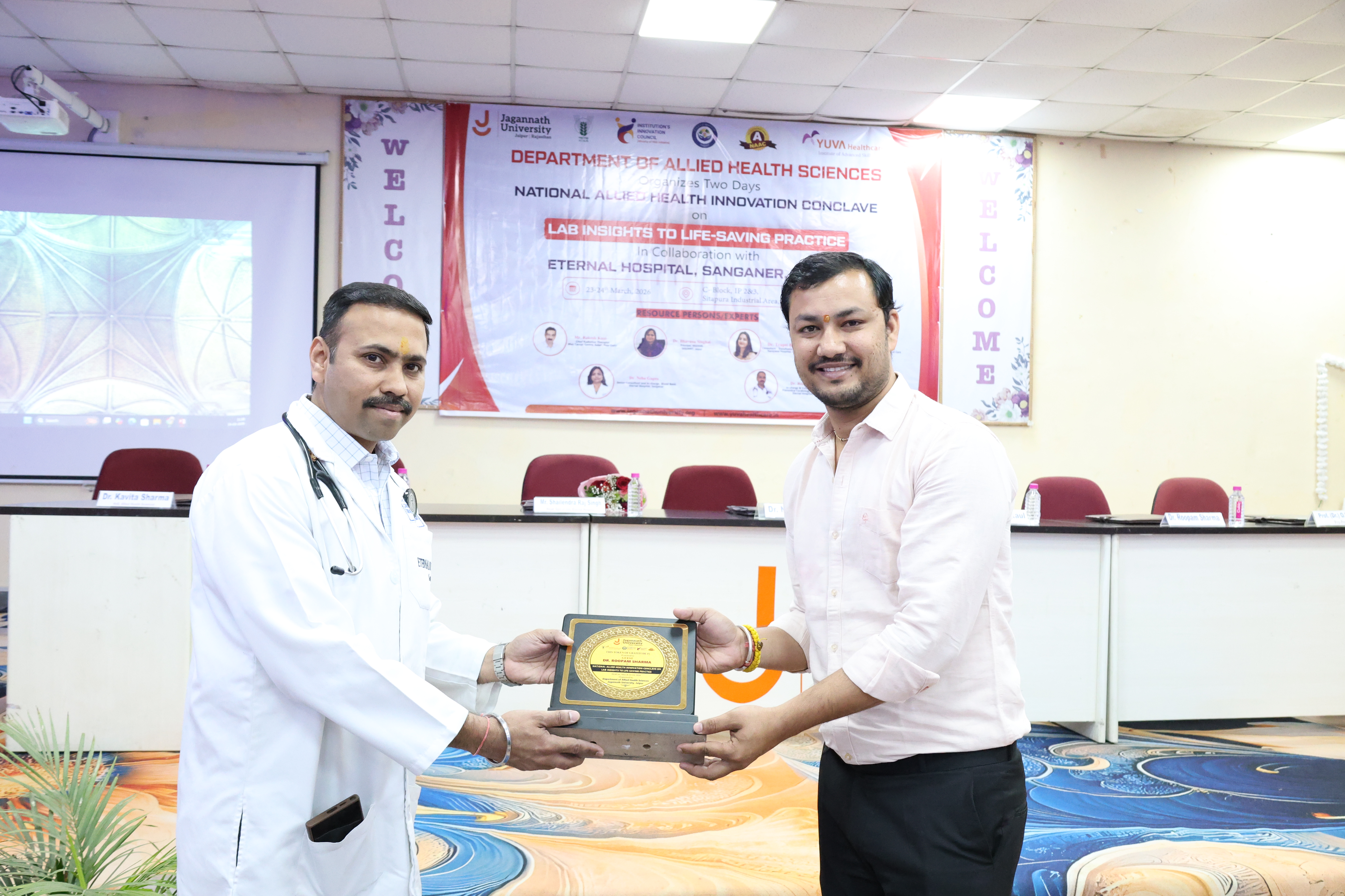 The Department of Allied Health Sciences, Jagannath University, Jaipur, successfully organized a two-day National Allied Health Innovation Conclave 2026 on 23rd and 24th March 2026 at the university campus in collaboration with Eternal Hospital sanaganer. The conclave was designed as a dynamic platform to bridge the gap between theoretical knowledge and practical healthcare applications through simulation-based learning and interdisciplinary collaboration.