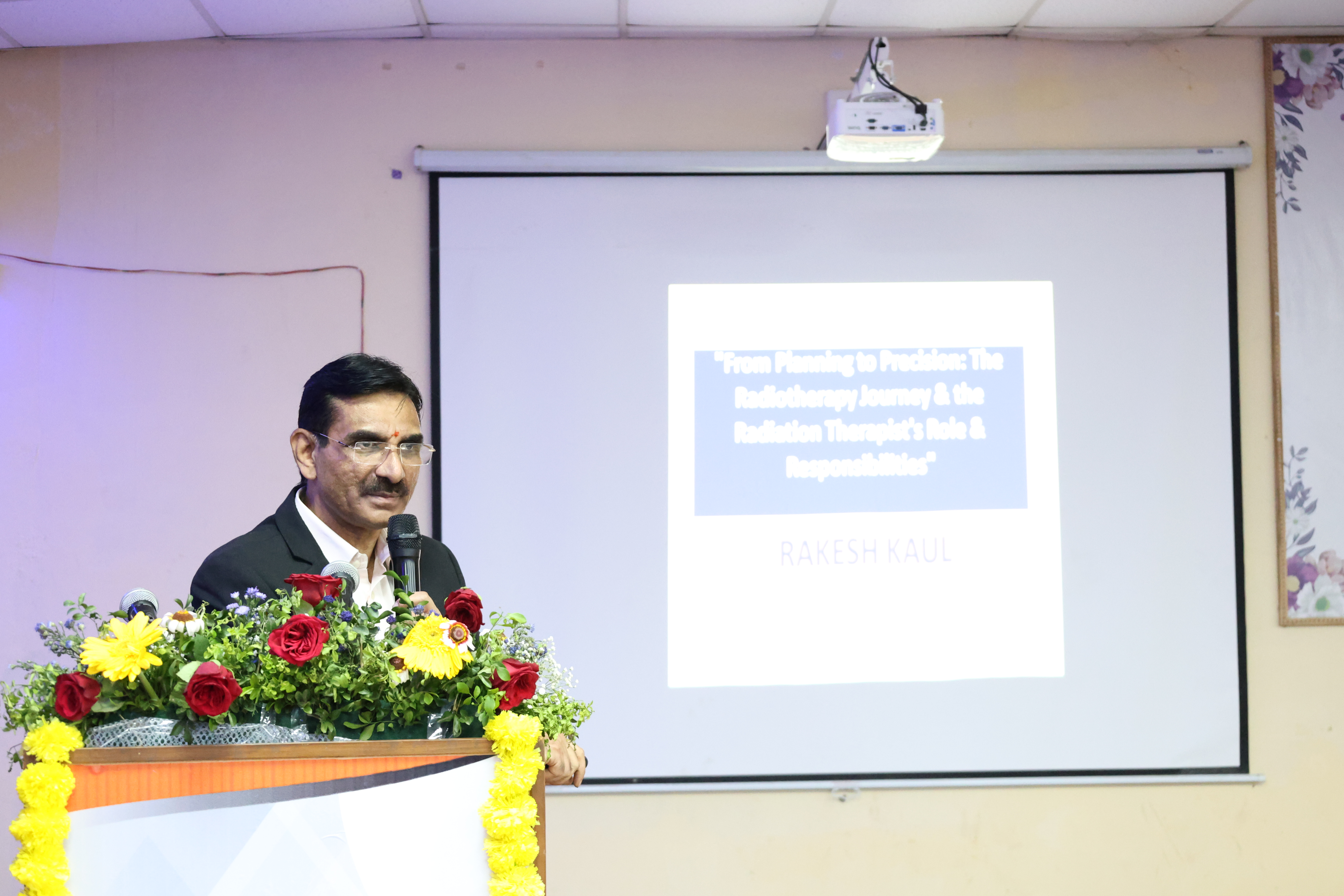 The second day began with a welcome note and continued with an expert session by Mr. Rakesh Kaul, Chief Radiation Therapist, who discussed advancements in radiotherapy practices.